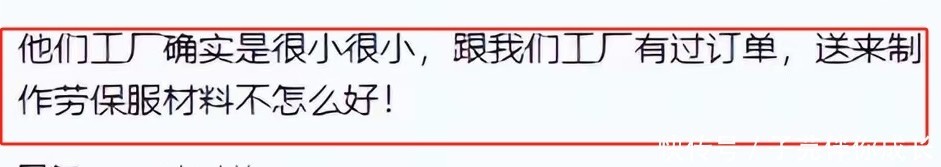 下面还有人证实,称确实公司很小,原来跟他有过业务上的往来,送来的劳保服材料不太好。